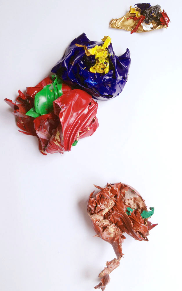 Past Present subverts the idea of acrylic on canvas. Made of dried paint peeled off discarded palettes, this work continues working with the medium of acrylic, albeit in a different manner. Each piece of dried paint takes on a life of its own, becoming an embodiment of time, space and action. These discarded pieces of paint continue to play an active role in the process of artmaking. Take a step back and make time to appreciate beauty in the discarded and forgotten…