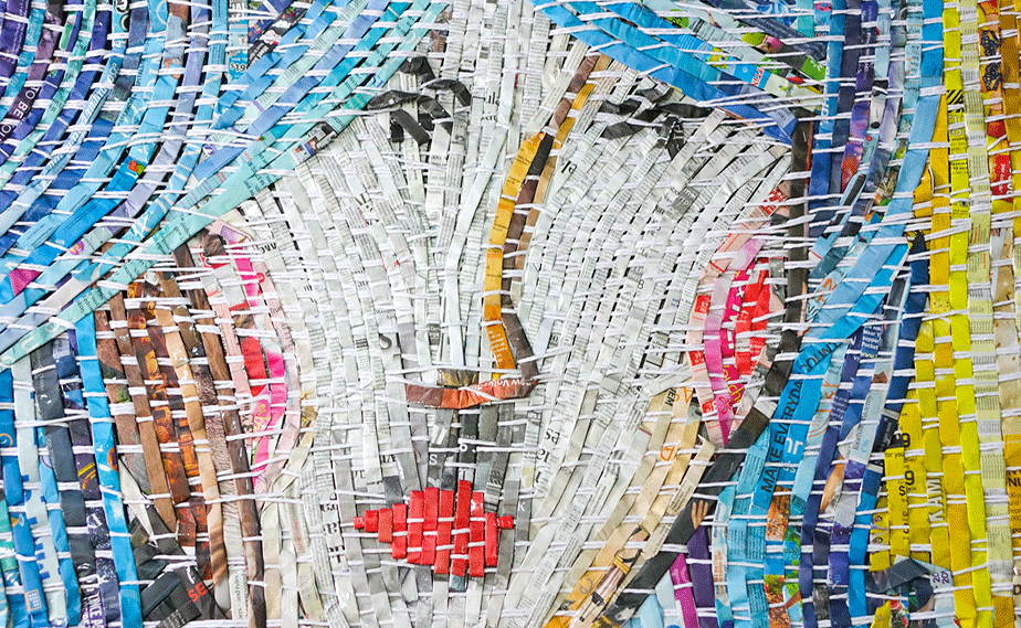 The art of weaving is one of the oldest suviving crafts in the world. The tradition of weaving traces back to approximately 12,000 years ago. I have been using recycled materials in my art-making and teaching. When I saw the work of Danish artist, Gugger Petter, who uses newspaper and prints for his weaving of portraits, I was inspired to try the technique.