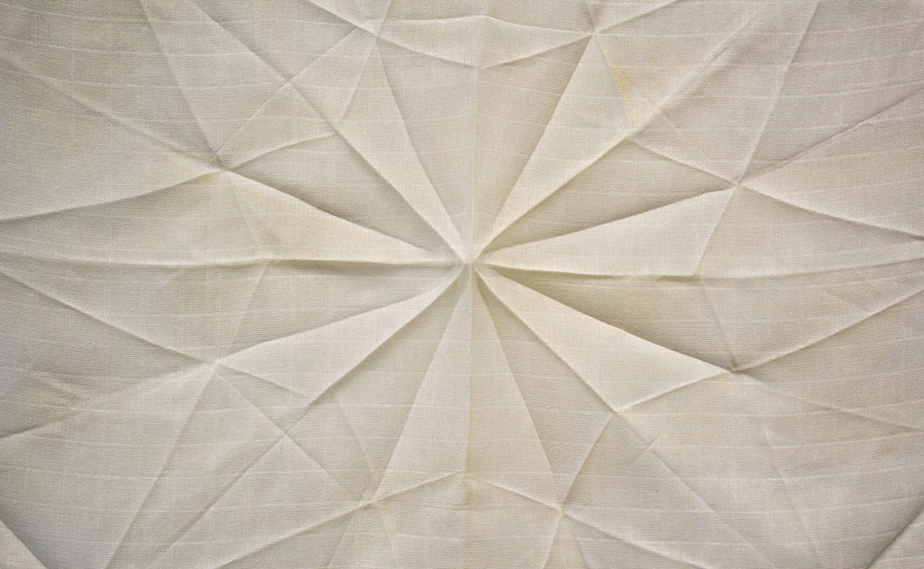 Creases, carefully ironed onto a baby’s napkin, form a radial pattern suggesting the sun. Instead of taking out the creases, the iron is used to perform the exact opposite to create an image of the sun to pay tribute the homemaker’s labour and to symbolise her constant wish for the sun to be out so that her laundry can be dried in time for the next wash. This work explores the idea of domesticity through investigating mundane routines of doing household chores.