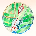 Google maps and physical maps from old books were used to represent the physical locations in Chen’s poems. Chen sees these random moments of solitude as important magical surprises. I have tried to represent them using the process of decoding and recoding through colours. The works do not aim to be faithful representations of the actual maps, but rather the variety of experiences and rhythms we can gather in this world.