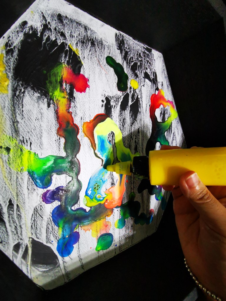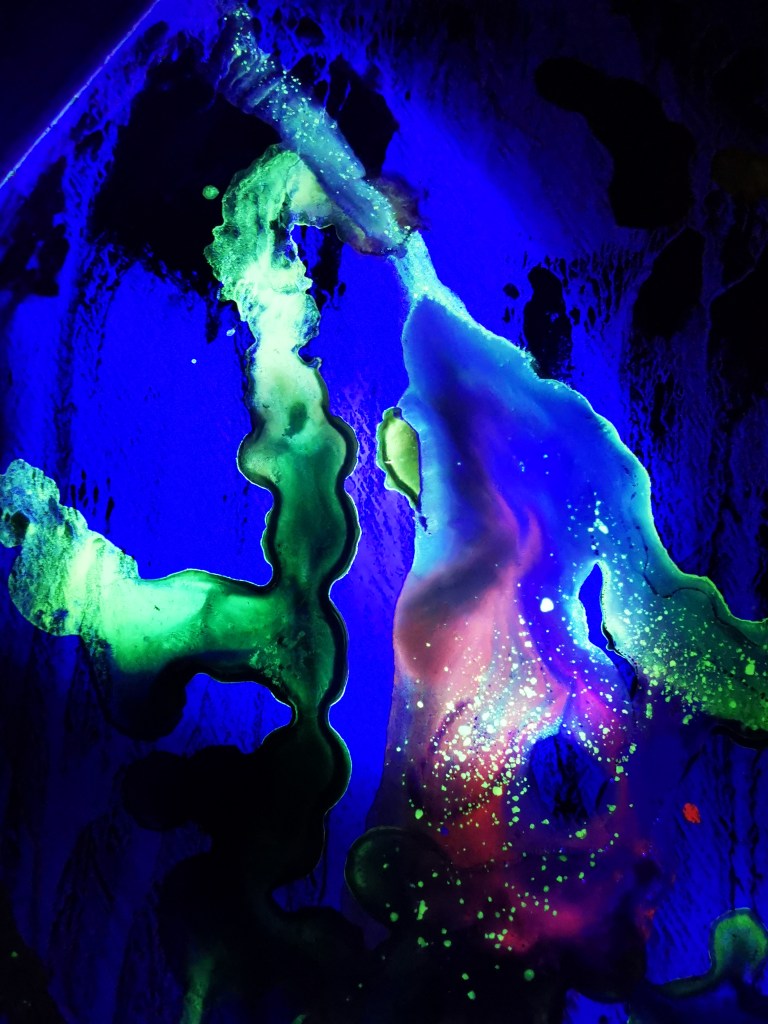 For those who’d like a twist in a story, view the work under UV light to discover the enigmatic ‘silver lining’ or ‘beauty hidden behind the scenes’.