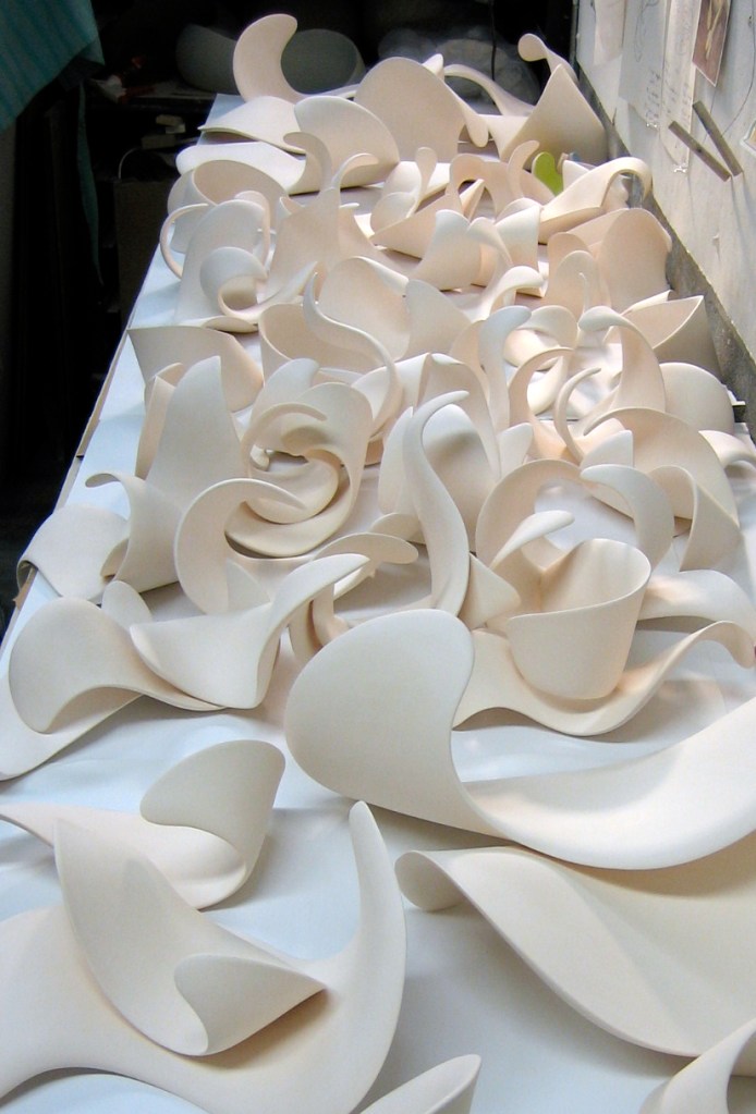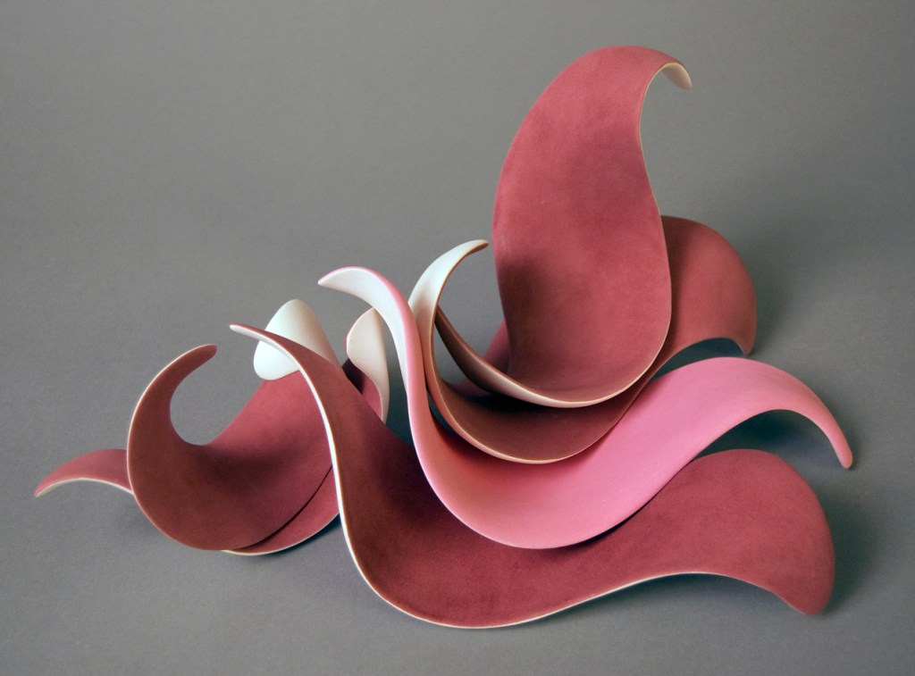In Whorled, Chwee Kim uses these S-shaped ceramic pieces to symbolise changes, possibilities, continuity and flexibility in this VUCA world. Challenging the boundaries of a traditional medium through contemporary ways of manipulation, clay is being folded, stretched or twisted; just as if working with paper.