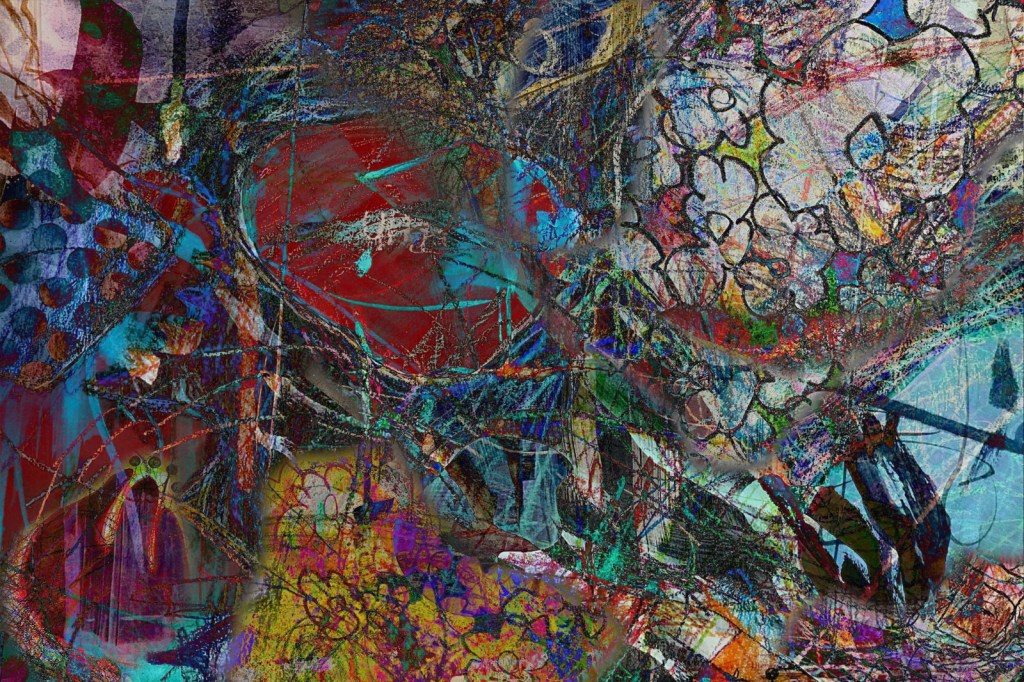 A collaborative collage and exploratory works of two ATM (Artist/Teacher/Mummy) who took the courage to find pockets of time to document and express their emotions and visual voice using colours, textures and layers created by both traditional mediums and everyday objects. Reflecting on the different roles they play in these pressing times and to cater to the needs of the changing world, the works were co-created together with their children physically and virtually; with the works being exchanged, added on, composited and collaged together using mixed media and technology before finally being transferred into fabric. The back and forth process and interplay of media also represent how our thought processes bounce off each other. The works create a dialogue of two individuals who share commonalities and challenges and allow it to unfurl through a visual representation. The dynamic process of creating the work poetically depicts how we wear many hats while multi-tasking and making 10000 decisions a day. A tapestry of flow that attempts to portray emotions such as frustration, happiness, fun, exploration and many more.