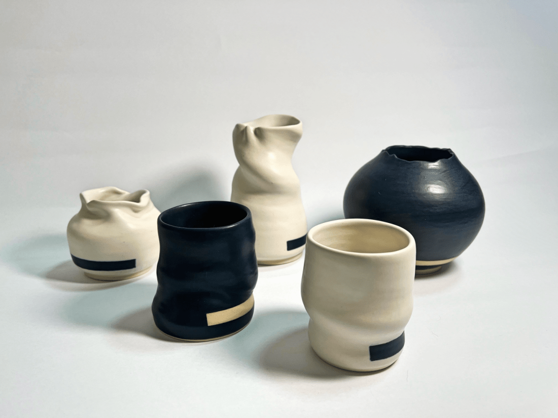In Imperfect Reflections, each ceramic piece embraces spontaneity and the idea of letting go, releasing the tight grip on perfection. Each irregularity, asymmetry and unexpected nuance are not flaws, but a celebration of beauty found in the raw and unrefined. It is a reminder to revel in the joy of creating without restraint and allowing imperfections to take centre stage. However, amidst this pursuit, I was still unconsciously pulled towards perfection and the yearn to achieve refinement, highlighting the paradoxical nature of artistic expression and the tension between intention and outcome.