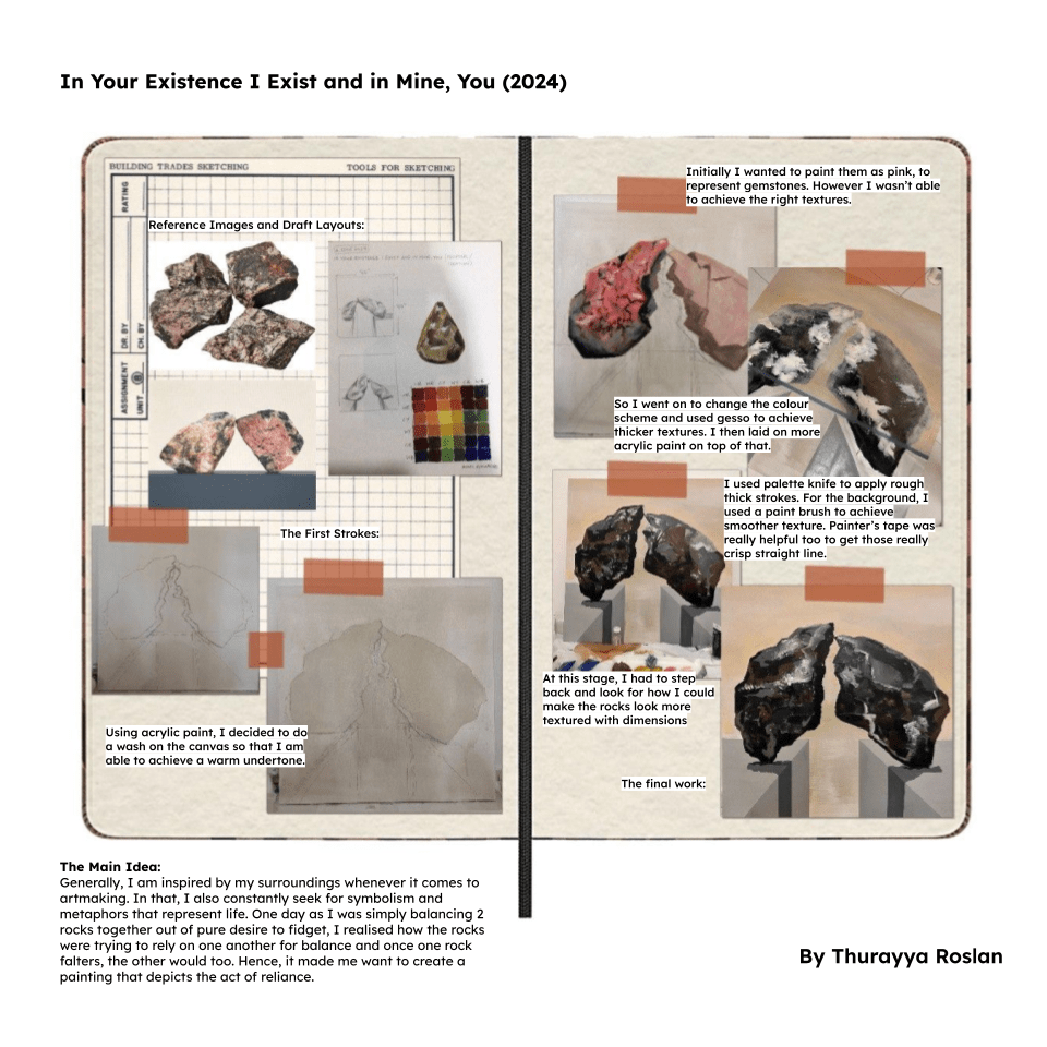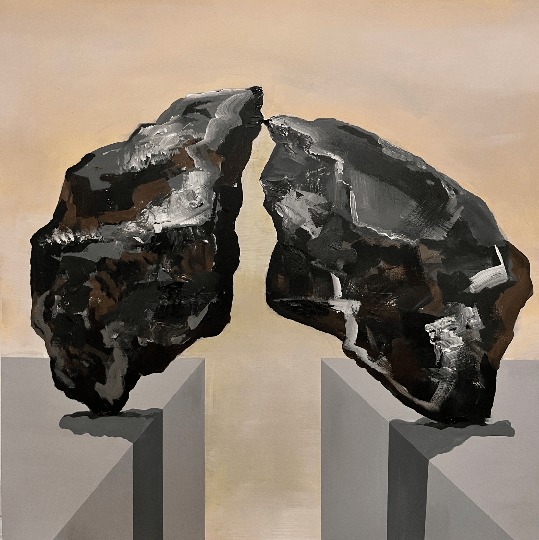 In my artwork, I explore the delicate nature of relationships and the question of dependability. Depicting two rocks leaning against each other over a canyon, the painting symbolises the precariousness of interdependence. It prompts reflection on whether reliance on others is inherently risky or if it fosters resilience. As viewers contemplate the potential collapse of one rock leading to the downfall of the other, they confront the complexity of human connections and the value of trust in uncertain terrain.