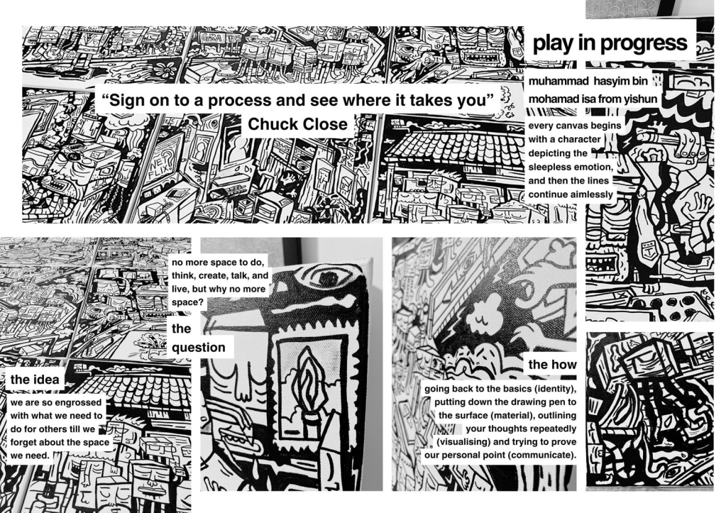 As we straggle with the important things in life, we tend to forget about the ‘space’ that we truly need for ourselves. People tell us to take a break, but do we really seek that void to focus on our well-being or are we just procrastinators for the empty spaces that we crave? This series of illustrations on canvas intends to present the notion of No More Space by inviting the audience to feel visually overwhelmed, and perhaps relate to the complexity of issues that do not seem to have definitive solutions.