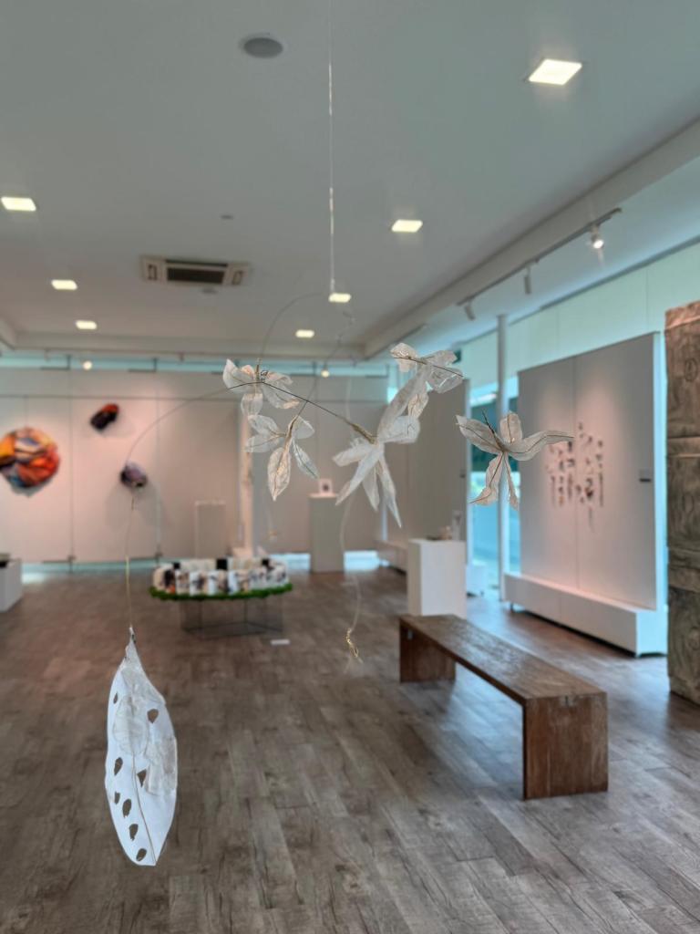 The hanging mobile represents the unstable nature of memory. Its movement mirrors how thoughts drift and change, sometimes gently, sometimes unexpectedly. As time passes, memories may overlap, fade, or lose sharpness rather than disappear completely. The leaves are made from layered tracing paper, showing how memory can feel clear at times and hazy at others. Bandages woven into the leaves reflect both hurt and care, acknowledging the emotional impact of memory loss while also pointing to protection, patience, and support.